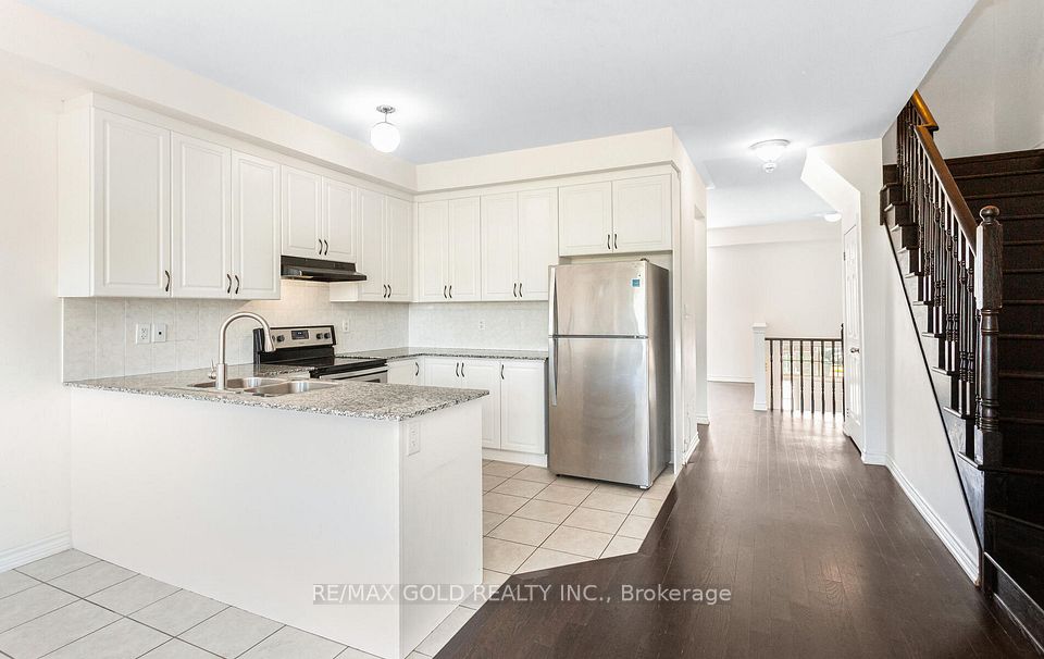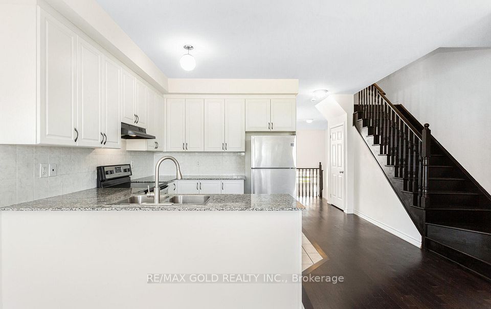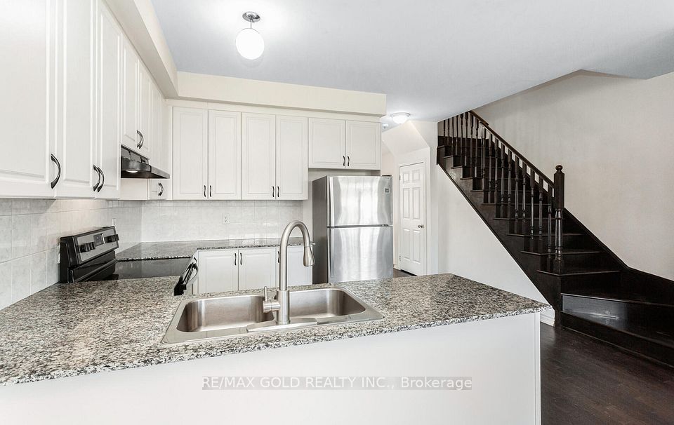 Beautiful 3+1 bedroom, 4 bathroom freehold townhouse in Mount Pleasant North, Brampton. Peaceful, family-friendly community with open concept living/dining/kitchen layout. Primary bedroom has ensuite & walk-in closet. Upgraded kitchen with stainless steel appliances, breakfast bar & separate pantry. Living room features a striking accent wall. Includes 3 parking spots, cobblestone patio & walk-out. Close to schools, parks, shopping & transit